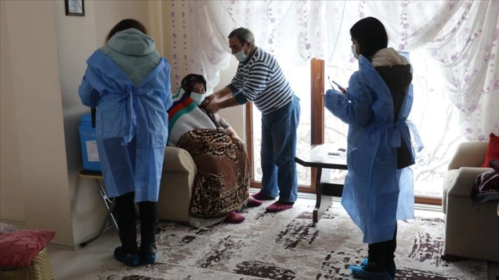 Son olarak yaklaşık 6 yıldır yatalak hasta olan 62 yaşındaki Medine ile eşi Ali Hüseyin Coşkun'u (63) Yeni Mahalle'deki evlerinde ziyaret eden sağlık ekibi, çiftin zamanı gelen aşısını yaptı.