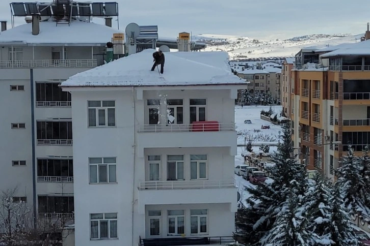 Elazığ'da günlerdir süren kar yağışının durmasıyla birlikte bazı vatandaşlar çatılarda biriken karı temizlemeye başladı. Bir vatandaşın hiçbir önlem almadan çatıdaki karı temizlemeye çalıştığı görüldü.