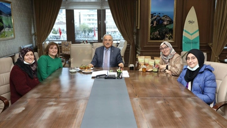 Ordu'da Perşembe ilçesindeki kadın kooperatifi üyeleri, yaptıkları kivi dolmasını Büyükşehir Belediye Başkanı Hilmi Güler'e tanıttı.