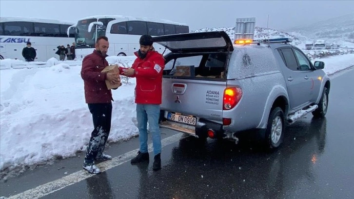 Osmaniye'de yoğun kar yağışı nedeniyle yolda mahsur kalanlara yiyecek, içecek ve akaryakıt desteğinde bulunuldu, 317 kişi misafirhanelere yerleştirildi.