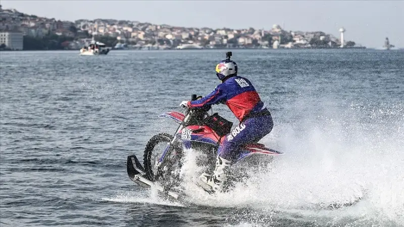 Dünyaca ünlü motokros yarışçısı Robbie Maddison, kendi tasarladığı motosikletiyle İstanbul Boğazı'nı su üzerinde geçerek bir ilke imza attı.