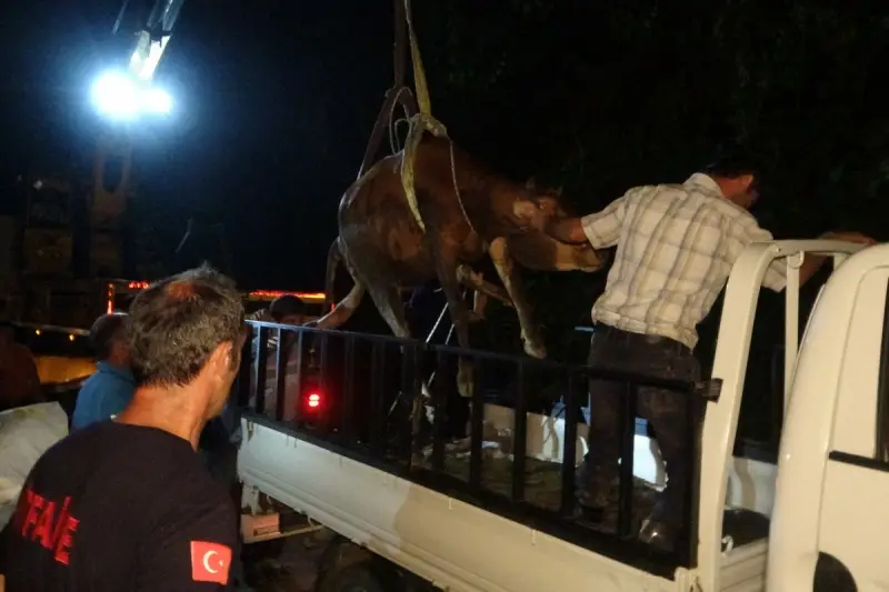 Olay, merkeze bağlı Kale Mahallesi, Piri Peis Caddesi'nde saat 16.00 sularında meydana geldi. Yolun hemen alt kısmında bulunan yeni duvarın yağmur nedeniyle çökme riski olduğundan Ramazan Kazdal'a ait ev tahliye edildi. Evde yaşayan 4 kişi kendileri çıktı ancak evin ahırında bulunan inek korktuğu için olduğu yerde oturdu. Tüm komşuların toplanarak ineği kaldırma çabaları olumlu sonuç vermeyince çareyi yardım aramakta bulan Kazdal ailesi, nereyi aradıysa bir türlü çözüm bulamadı. Son olarak Rize Belediyesi İtfaiye ekiplerinden yardım isteyen aile olay yerine gelen itfaiyeye ait vinç yardımı ile gebe ineği halatlarla bağlayarak bulunduğu yerden saat 22.40'ta çıkardı. Yaklaşık 6 saat süren çalışmanın ardından bulunduğu yerden itfaiye ekiplerinin de yardımı ile çıkartılan inek veterinere gitmek üzere kamyonetin kasasına konuldu.