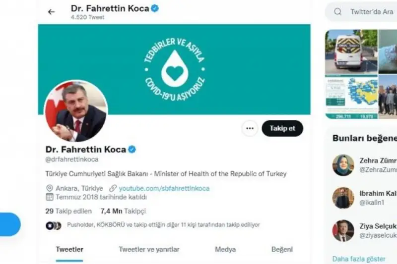 Fahrettin Koca'nın twitter hesabında 7 milyondan fazla takipçi artışı görüldü
