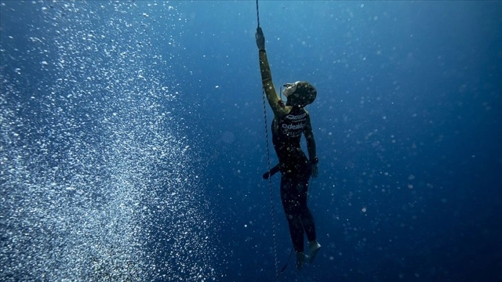 Serbest dalış dünya rekortmeni Şahika Ercümen, paletsiz değişken ağırlık kategorisinde tek nefeste 100 metre derinliğe indi.