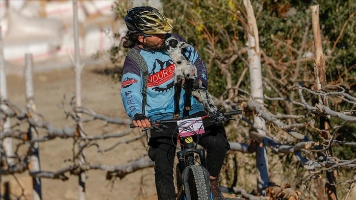 Şampiyon sporcunun başında kask, sırtında kamp sandalyesi ve çantasıyla bisiklet kullanarak çobanlık yaptığını gören bölge halkı şaşırıyor.