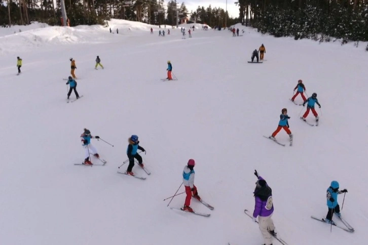 Türkiye'nin bir çok kentinden tatil için Sarıkamış'a gelen aileler, çocuklarıyla kayak yapmanın keyfini yaşıyor. Kar kalınlığının 90 santimetreyi geçtiği kayak merkezindeki otellerdeki doluluk oranı ise yüzde 100'e ulaştı.