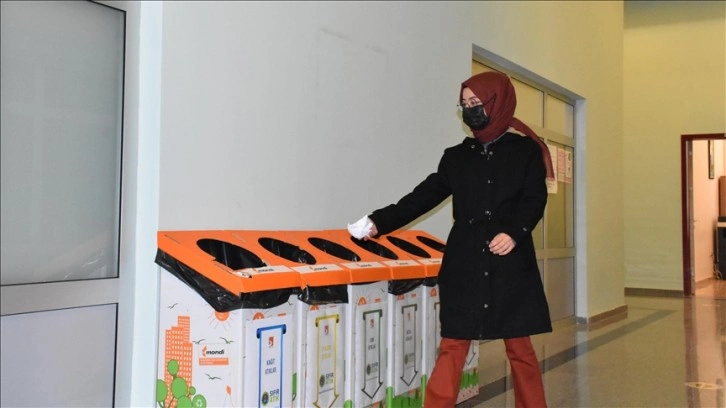 Üniversite personeli ve öğrenciler, atıklarını koridorlarda bulunan kutulara atıyor. Toplanan atıklar, sınıflandırılarak anlaşmalı firmaya teslim ediliyor.