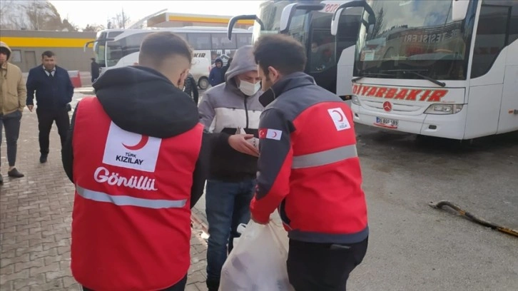 Türk Kızılayı Sivas Şubesi gönüllüleri, dün geceden itibaren Kangal ve Ulaş ilçelerindeki misafirhane, pansiyon ile Sivas-Kayseri kara yolu güzergahında bulunan Taşlıdere mevkisindeki dinlenme tesislerinde konaklayan vatandaşlara sıcak yemek ve kumanya dağıttı.