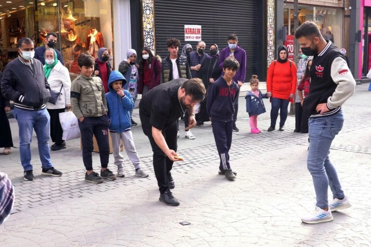 Farkındalık oluşturmak adına dünyada milyonların izlediği Squid Game dizisindeki oyunu Sakarya'da oynatan et mangal restoran işletmecisi Enes Baytar, kazananlara hamburger dağıttı. Sakarya'nın en işlek caddelerinden olan Çark Caddesi'ne elinde Squid Game dizisinde yer alan kartlar ile çıkan Baytar, farklı bir etkinliğe imza attı.