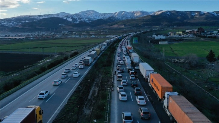 Araçların otoyoldan tek şeritli yola geçişi sırasında Narlı-Nurdağı gişeleri arasında uzun araç kuyruğu oluştuğu görüldü.