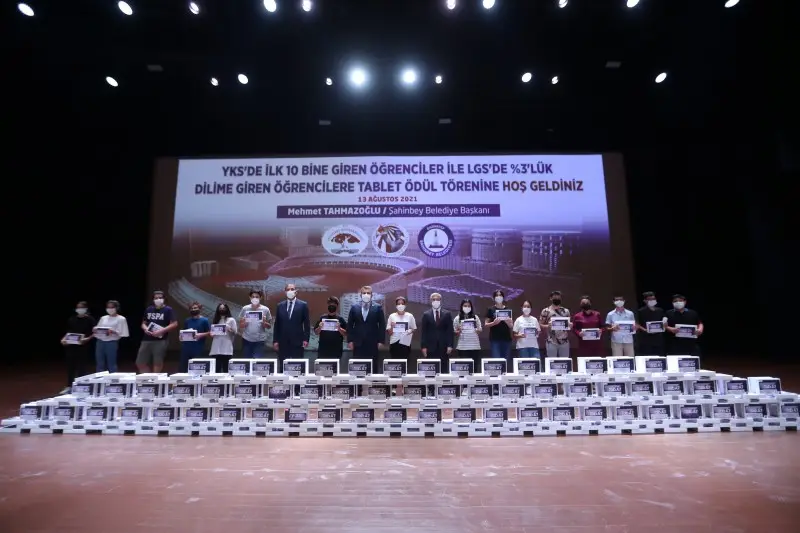 Daha önce başarılı öğrencilere dizüstü bilgisayar, bisiklet ve kitap gibi birçok farklı hediyelerle ödüllendiren Şahinbey Belediye başkanı Mehmet Tahmazoğlu YKS’de 10.000’e LYS’de ise yüzde üç dilimine giren 321 öğrenciye tablet hediye etti. Şahinbey Kongre ve Sanat Merkezi’nde düzenlenen programa Şahinbey Kaymakamı Tahir Şahin, Şahinbey Belediye Başkanı Mehmet Tahmazoğlu, Şahinbey İlçe Milli Eğitim Müdürü Erdal Kılınç, protokol üyeleri, öğrenciler ve velileri katıldı.