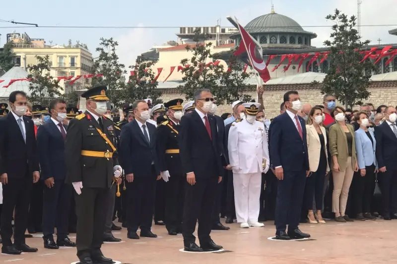 30 Ağustos Zafer Bayramı'nın 99'uncu yıl dönümü kapsamında Taksim Meydanı'nda bulunan Cumhuriyet Anıtı'nda çelenk koyma töreni düzenlendi. Törene İstanbul Valisi Ali Yerlikaya, 1'nci Ordu Komutanı Korgeneral Kemal Yeni, İstanbul Büyükşehir Belediye Başkanı Ekrem İmamoğlu ve siyasi parti üyeleri de katıldı. Tören çelenklerin bırakılmasının ardından İstiklal Marşı okunması ve saygı duruşu ile sona erdi.