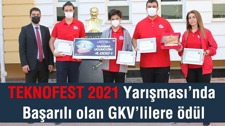 TEKNOFEST 2021’e “Fıstıktan Maskeye" projesiyle katılarak lise fikir seviyesinde Türkiye üçüncülüğünü kazanan Gaziantep Kolej Vakfı Özel Okulları Biyomedikal Takımı GKV Özel Liseleri Müdürü Engin Biba tarafından ödüllendirildi. Türkiye Teknoloji Takımı Vakfı (T3 Vakfı) ve T.C. Sanayi ve Teknoloji Bakanlığı’nın yürütücülüğünde, Türkiye’de milli teknolojinin geliştirilmesi konusunda kritik rol oynayan birçok kuruluşun paydaşlığıyla düzenlenen Türkiye'nin ilk ve tek havacılık, uzay ve teknoloji festivali olan TEKNOFEST 2021 Festivaline katılan Gaziantep Kolej Vakfı Özel Okulları Biyomedikal Takımı “Fıstıktan Maskeye" projeleriyle katıldıkları yarışma dalında Türkiye üçüncülüğünü elde etmesi kadar öğrencilerin bilimsel bir atmosferde yarınların teknolojilerini yakından görme ve tanıma şansı yakalamalarının büyük önem taşıdığını ifade eden GKV Özel Liseleri Müdürü Engin Biba başarılı öğrencileri kutladı. Projenin danışman öğretmeni Şule Kozanoğlu ve projede görevli öğrenciler Umut Kozanoğlu, Tolga Tiryaki ve Berke Şekeroğlu’na teşekkür eden Okul Müdürü Biba öğrencilerin ödüllerini ve başarı sertifikalarını takdim etti. Projenin danışmanlığını yürüten Projenin danışman öğretmeni Şule Kozanoğlu katıldıkları yarışmanın öğrenciler için büyük bir şans olduğunu ve yarışma atmosferinde tanıştıkları bilim adamlarından önemli bilgiler alırken geleceğin teknolojilerine şahitlik etmenin mutluluğunu yaşamanın onlar için büyük bir deneyim olduğunu sözlerine ekledi.