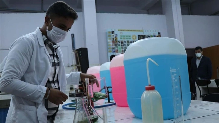 Dezenfektan, yer temizleyici ve sıvı savun üretiminden elde ettiği gelirle hem kendi harçlığını çıkardığını hem de ailesine destek olduğunu aktaran Metin Eksen de üniversitede kimya mühendisliği okumak istediğini belirtti.
