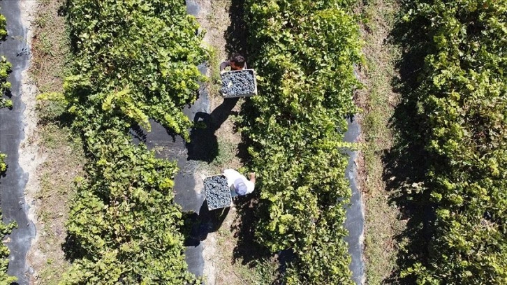 Erzincanlı çiftçilerin önemli geçim kaynakları arasında yer alan ve kent genelinde 8 bin 650 dekar alanda yetiştirilen siyah üzümde hasat devam ediyor.