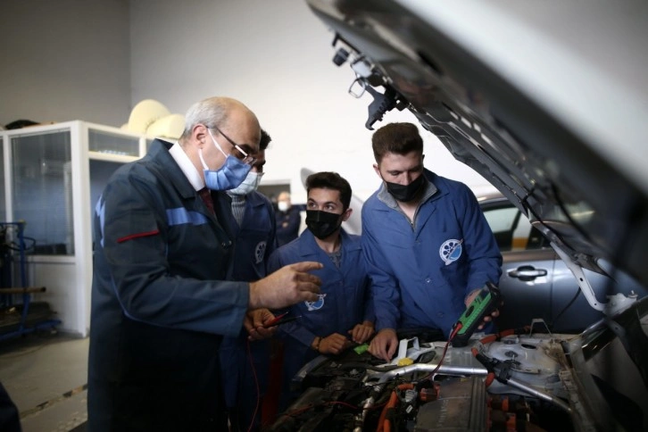 Toplam 4 dönemlik bir eğitimimiz var. Bu 4 dönem içerisinde mümkün olduğunca öğrencilerimize pratik eğitim vererek eğitimlerini sürdürmeye çalışıyoruz. Araçlar üzerinde yapacağımız uygulamalarda birinci öncelik yüksek gerilimli çalışmalarda olduğu için iş güvenliğidir. Bu konuyu her dersin içerisine yedirdik. Derse başlamadan önce bununla ilgili 2-3 hafta eğitim veriyoruz. Çünkü içeriğe baktığımız zaman teknik boyutunun dışında güvenlik birinci plana çıkıyor. Bildiğimiz bütün araç markaları artık ya hibrit ya da full elektrikli araçlar getiriyor. Dolayısıyla burada kalifiye çalışacak personel lazım, bizim de bu programımızda kurmuş olduğumuz altyapı tamamen buna yönelik. Satış sonrasında eğer öğrenci çalışmak isterse problem çıkmadan rahatlıkla sahada çalışabilecek düzeyde olacak. Öğrencilerimizin sahada iş bulamama gibi sıkıntılar yaşamayacaklarını düşünüyoruz” şeklinde konuştu.