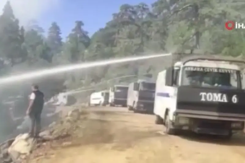 Muğla'da çıkan orman yangılarını söndürmek için desteğe gelen Toma'ları gören ormancıların mutluluğu görüntülere yansıdı.