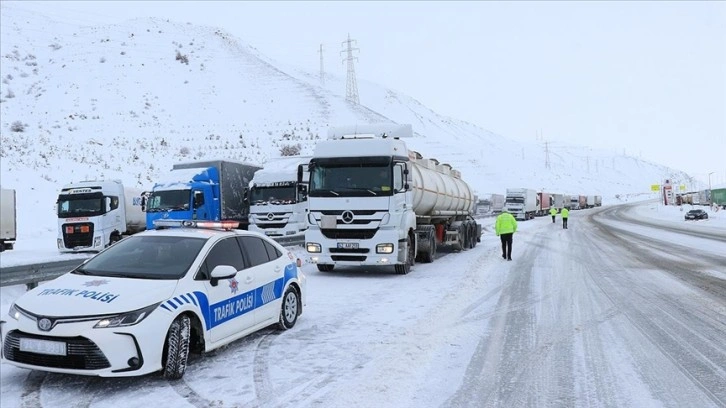 Kar kalınlığının 100 santimetreyi bulduğu ve buzlanma, sis ile tipinin ulaşımı etkilediği kara yolunda görev yapan polisler, tüm olumsuz hava koşullarına rağmen gece, gündüz demeden çalışıyor.