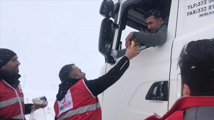 Ulaşımın kontrollü olarak sağlandığı kara yollarında beklemek zorunda kalan sürücüleri yalnız bırakmayan Türk Kızılay Kırşehir Şubesi ekipleri, kumanya dağıtarak ihtiyaçlarını gideriyor.