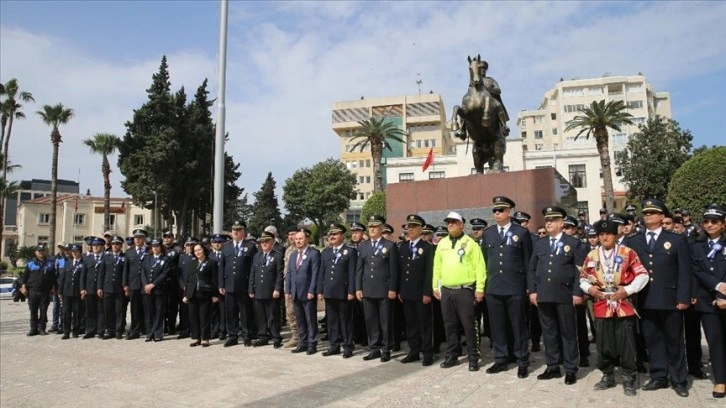 Mersin'deki Cumhuriyet Alanı'nda düzenlenen törende, İl Emniyet Müdürü Mehmet Aslan ve Şehit Altuğ Verdi Polis Meslek Eğitim Merkezi Müdürü Zafer Ağırkaya, Atatürk Anıtı'na çelenk sundu.