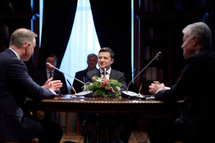 Polonya Devlet Başkanı Andrzej Duda, Litvanya Cumhurbaşkanı Gitanas Nauseda, Ukrayna Devlet Başkanı Vladimir Zelenskiy'nin ev sahipliğinde Huta kasabasında düzenlenen Lublin Üçgeni Zirvesi'nde bir araya geldi. Rusya'nın baskı ve provokasyonları karşısında Ukrayna'ya destek amaçlı düzenlendiği belirtilen zirvede liderler, güvenlik, göçmen krizi başta olmak üzere son dönemde bölgede meydana gelen gelişmeleri ele aldı. Litvanya, Polonya ve Ukrayna'nın politik ve askeri konular başta olmak üzere işbirliği içinde olunacağına ilişkin bildirge imzalayan 3 lider, zirvenin ardından ortak basın toplantısı düzenledi. Ukrayna Devlet Başkanı Vladimir Zelenskiy, bölgede yaşanan gelişmeler göz önüne alındığında bu tip toplantıların daha sık yapılması gerektiğini belirtirken, Rusya'nın Ukrayna sınırındaki askeri varlığını arttırdığı bu dönemde destek ve işbirliğinin önemine işaret etti. Gerçekleşen zirvede Zelenskiy, "Rusya'nın saldırganlığı ile mücadele etmekteyiz. Bizlerin ortak görevi Avrupa'yı Rus saldırganlığından korumak. Böylesi bir dönemde birlik olmak, tek sesli olmak çok önemli" sözlerine yer verirken Rusya'nın nükleer silahlarını Belarus topraklarına konuşlandırma ihtimali sorusuna ise, "Putin'in aklına gerginliği daha da arttırma fikri gelmeden Rusya'ya ambargo uygulanmalı" şeklinde konuştu. Rus nükleer silahlarının Belarus'a yerleştirilme ihtimalini 'kaygı verici' olarak yorumlayan Zelenskiy, böyle bir olasılıkta ciddi bir tehdit altında bulunacaklarını da sözlerine ekledi.