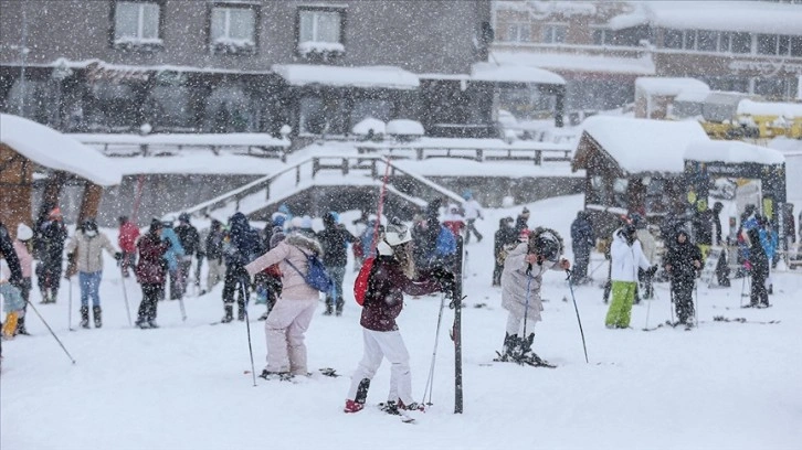 Kar kalınlığının 50 santimetreye ulaştığı Oteller Bölgesi'nde yerli ve yabancı turist yoğunluğu yaşanıyor. Ziyaretçiler kayak ve snowboard yaparak karın tadını çıkarıyor.
