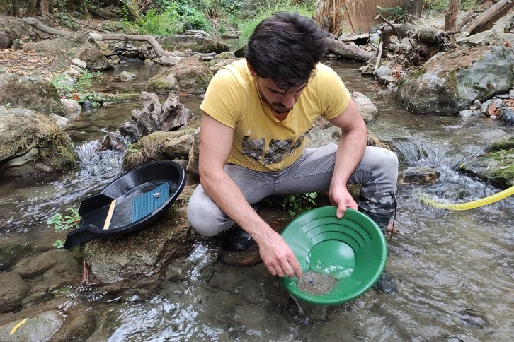 6 yıldır derelerde doğal altın aradığını ifade eden Emre Aydın, "Altın avcısıyım Bu işe 6 yıl önce hobi olarak başladım. Bu altın doğada her yerde bulunuyor. Bu sadece aramasını ve yerini bileceksin. Biz 6 yıllık tecrübemizle nerelerden çıktığını tespit edebiliyoruz. Bu iş için makine aldık. Bu makine sayesinde günde 1 ton 500 kilo toprağı eleyebiliyoruz. Bu işi hobi olarak devam ettiriyoruz. Ben başka bir işte çalışıyorum hafta sonları 2 gün tatilim var, onu da altın arayarak değerlendiriyorum. Kaynağına denk geldiğimizde günde 15 gram altın bulduğumuz oldu. 6 yıl içinde 500 gram altın topladım" dedi.