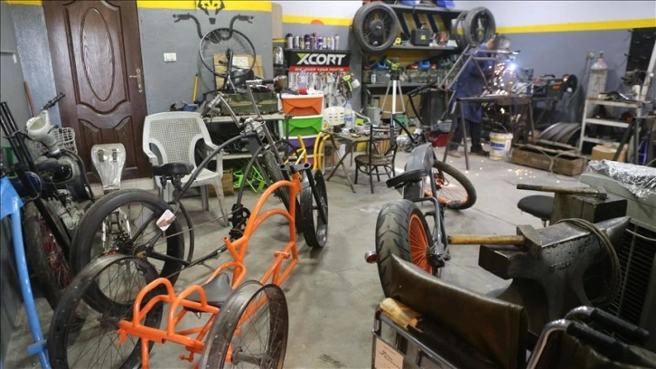 Ürdün'de geçirdiği çocukluk felci nedeniyle engelli olan 45 yaşındaki Halid el-Amr, başta çocuklar olmak üzere kendisi gibi engelli bireyler için özel bisikletler üretiyor.