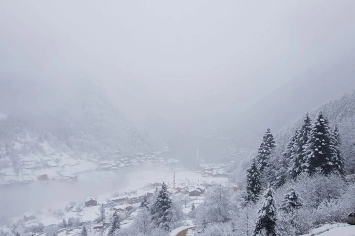 Trabzon'a 99, Çaykara ilçe merkezine ise 19 km uzaklıkta, deniz seviyesinden ise bin 90 m yükseklikteki Uzungöl, kar yağışı ile birlikte beyaz gelinliğini giydi. Hava sıcaklığının eksi 3 derece. kar kalınlığının ise 5-10 cm arasında değiştiği Uzungöl, beyaz örtüsü ile birlikte doğa severleri bekliyor.