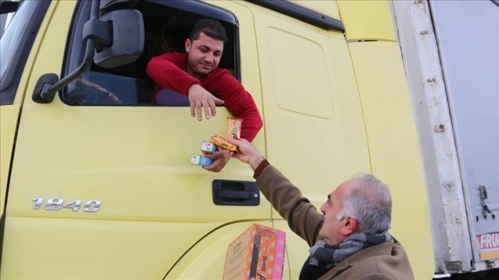 Edremit ilçesinde, yolda kalan yolcu ve sürücülere belediye ekipleri tarafından kek ve meyve suyu ikram edildi.