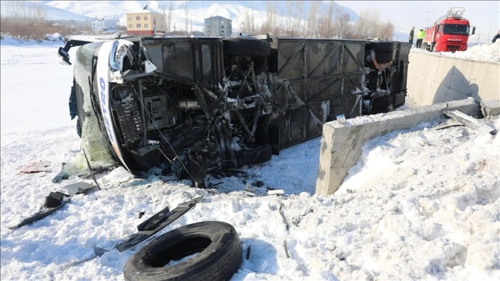 Van'ın Gevaş ilçesinde, kontrolden çıkan yolcu otobüsünün devrilmesi sonucu 2'si ağır 9 kişi yaralandı.