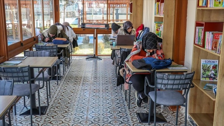 "Millet Kıraathanesi" formatından esinlenilen Edremit ilçesindeki kafe 27 Mart 2021'den bu yana ders çalışan öğrencilerden araştırma yapmak ve kitap okumak isteyen tüm kişilere sıcak bir ortam sunuyor.