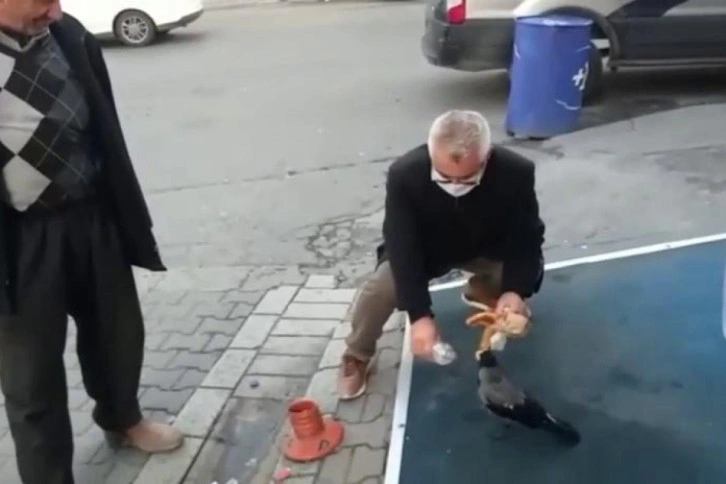Esenyurt'ta bir vatandaşın karga ile dostluğu görenleri tebessüm ettirdi. Daha önce de beslediği kargaya eliyle su ve yiyecek veren vatandaş, kargaya "O benim canım" diyerek sevgisini gösterdi. İkili arasındaki arkadaşlığı gören yaşlı bir adam ise şaşkınlığını gizleyemeyerek, "Bu hayvan çok farklı. Ben hayatımda böyle karga görmedim" dedi. Yüzlerde gülümseme bırakan o anlar ise çevredeki bir vatandaşın cep telefonu kamerasına yansıdı.