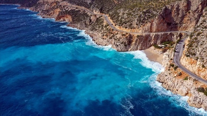 Antalya'nın Kaş ilçesinde etkili olan yağış dolayısıyla Kaputaş Plajı'nda deniz, başta turkuaz olmak üzere mavinin değişik tonlarına büründü.