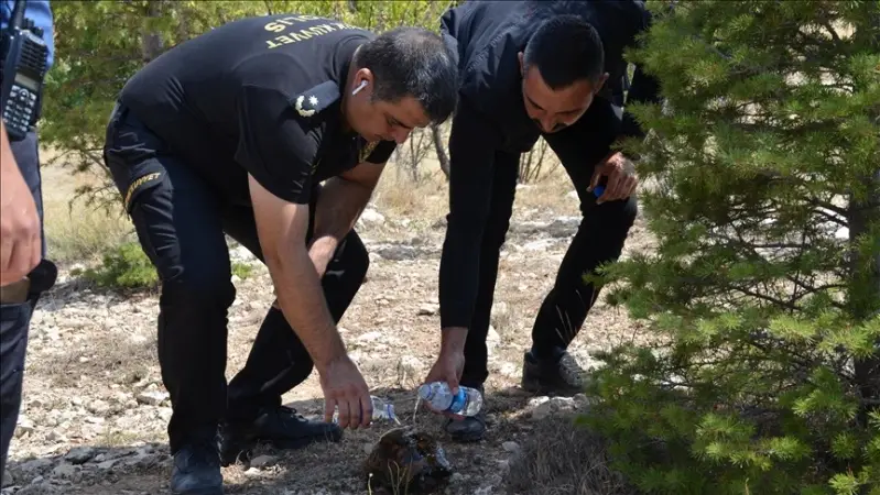 Karaman'da, İl Emniyet Müdürlüğüne bağlı açık atış poligonunda çıkan yangın ormanlık alana sıçramadan söndürülürken, alevlerin ortasında kalan kaplumbağayı, polisler kurtardı.