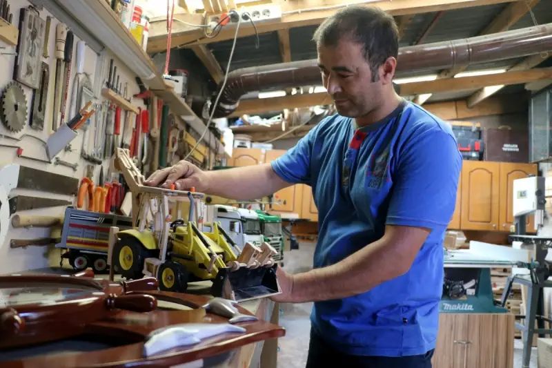 İnternetten indirdiği araçların fotoğraflarını inceleyen İlter, 1/14 ölçeğinde ahşaptan tır, kepçe ve kamyon gibi araçların birebir oyuncağını yapabiliyor. Yapımı yaklaşık 1 ay süren oyuncaklar görenleri oldukça şaşırtıyor.