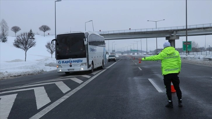 Kar nedeniyle otoyolun Bolu Dağı Tüneli kesiminde bir dinlenme tesisinin araç parkında bekletilen otobüslere, İstanbul, Kocaeli, Sakarya, Düzce yönüne hareket izni kontrollü veriliyor.