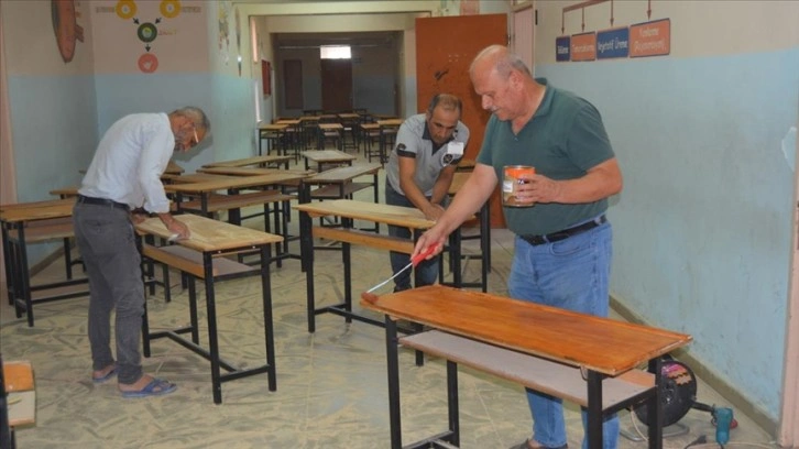 Gaziantep'in İslahiye ilçesindeki Şehit İsmet Kayar İlkokulu Müdürü Mehmet Bozkurt, yöneticisi olduğu 23 derslikli okulun duvarlarını boyayıp, eskiyen sıralarını onararak öğrenciler için hazır hale getiriyor.