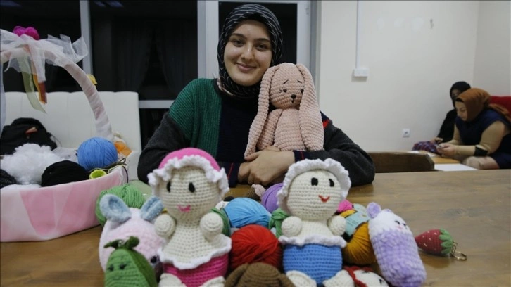 Betül Öksüz, AA muhabirine, öğrenci yurdunda merak saldığı örgü işinde kendini geliştirdiğini söyledi.