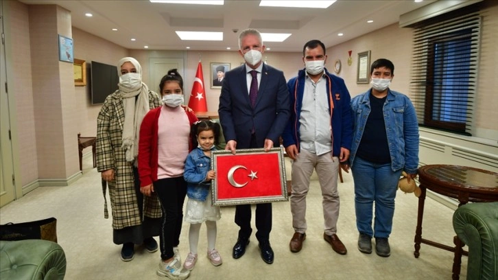 Vali Gül, ziyarette Bahar Kılıç'a Türk bayrağı tablosu hediye etti.