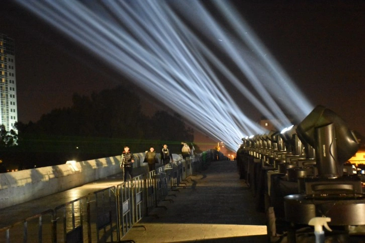 Adana'nın düşman işgalinden kurtuluşun 100. yılı etkinlikleri kapsamında Tarihi Taş Köprü üzerinde yapılan lazer gösterisi yapıldı.