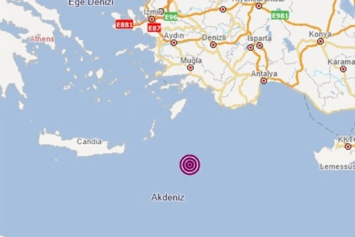 AFAD verilerine göre Akdeniz'de Kaş açıklarında 6 büyüklüğünde deprem meydana geldi.