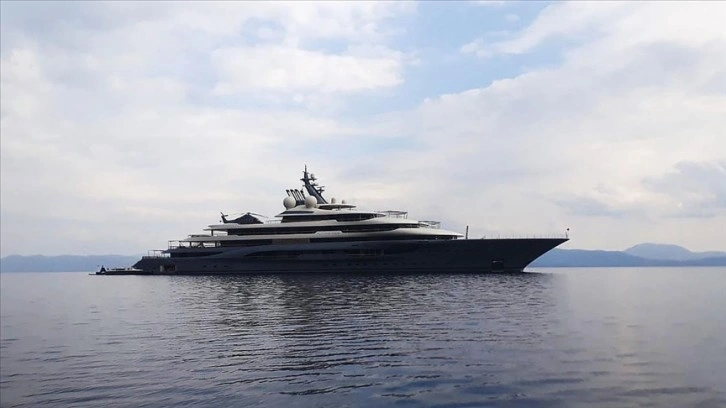 Jeff Bezos'un Cayman Adaları bayraklı 136 metre uzunluğundaki "Flying Fox" adlı yatı, Gökova Körfezi'ndeki Akbük Koyu'na demirledi.
