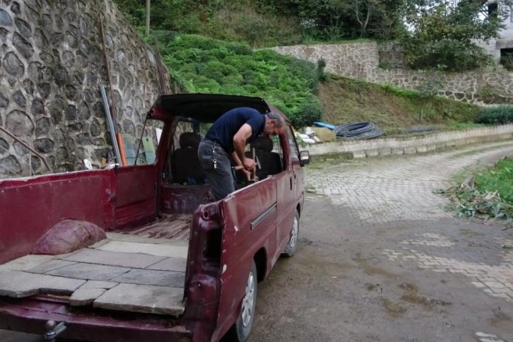 Rize'de yaşayan Ömer Deniz, panelvan aracına çay yüklerken kafasını aracın tavan kısmına vurunca çözümü spiral ile aracın tavanını kesmekte buldu.