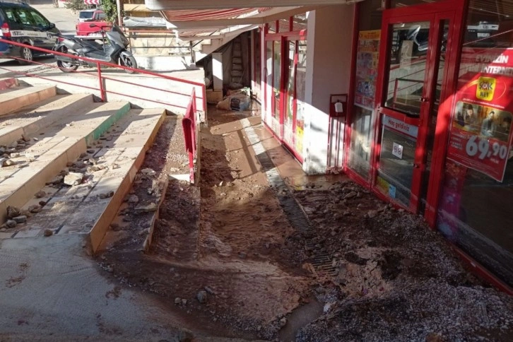 Diğer patlağın yaşandığı nokta ise Geriş Mahallesi oldu. Patlayan ana isale hattından çıkan sular, cadde üzerindeki süpermarketi bastı. Sular cadde üzerindeki bir evin bahçesini de göle çevirdi. Su baskını olan markette büyük çapta maddi hasar oluştu.