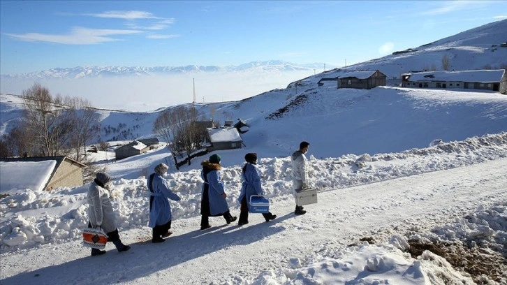 Muş'un engebeli coğrafyasında dondurucu soğuğa rağmen karla kaplı yolları aşarak en ücra köylere kadar giden ekipler, kapı kapı dolaşarak zamanı gelenleri ve geçmiş aşılarını yaptırmayanları aşılıyor.