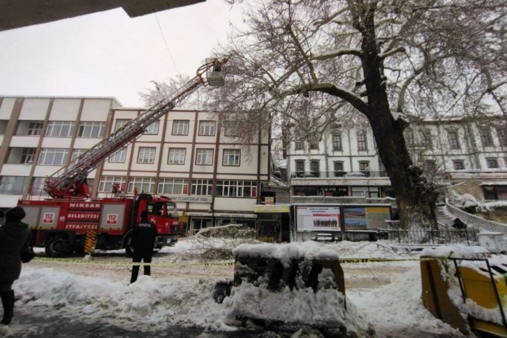 İtfaiye ekipleri, kırılan dalları araçların üzerinden kaldırırken, tehlike arz eden diğer dalları da kesti.