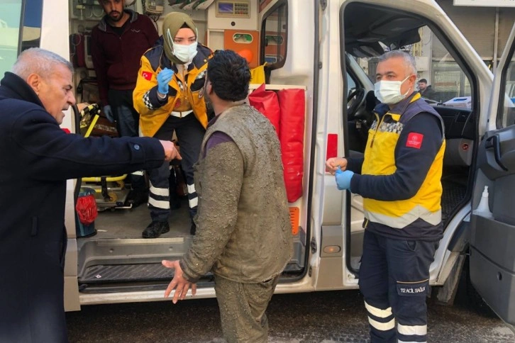Sağlık çalışanının yaralı işçiyi ambulansa bindirmek için ikna etmeye çalıştığı anlar görüntüye yansırken işçinin üzerinin betondan dolayı kirlendiğini gösterip “Bir şeyim yok” diyerek binmek istememesi izleyenlerin yüreğini burktu.