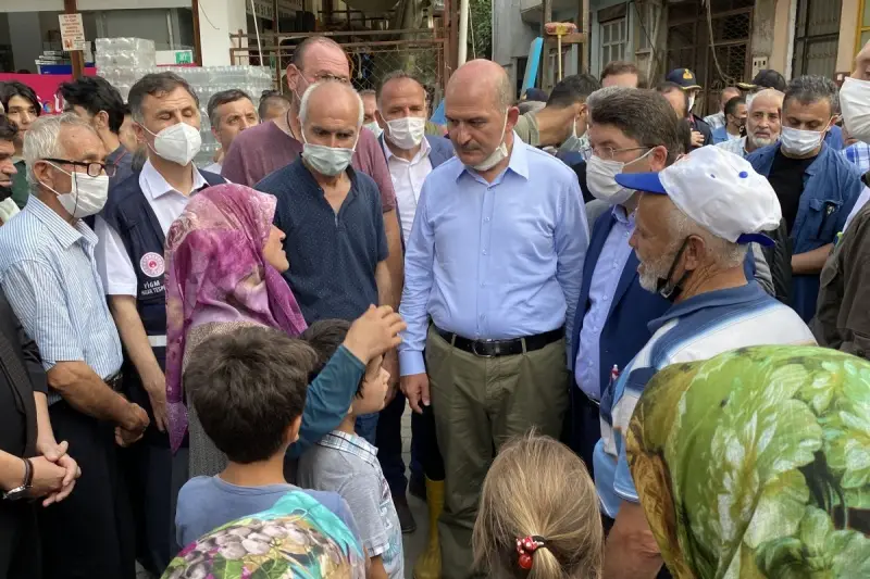 İçişleri Bakanı Süleyman Soylu, Bartın'ın Ulus ilçesine bağlı Zafer köyüne hareket etti. Yaşanan sel felaketinden en çok etkilenen Zafer köyüne geçen Soylu, kalabalık tarafından karşılandı. Burada vatandaşlarla tek tek görüşen Soylu, selzedelerin sorunlarını dinledi. Bir vatandaşın ahırının selde yıkıldığını söylemesi üzerine ahırın yapılacağını söyleyen Bakan Soylu, “Tayyip Erdoğan dedi ki ‘herkesin dediğini yapacaksınız' dedi. Elimizden geleni yapacağız. Tayyip Erdoğan'ın dediğini yapacağız” diye konuştu.