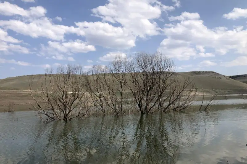 Kars'a yaklaşık 10 kilometre uzaklıkta bulunan sular altında kalan Boğazköy'de köylülerin diktiği ağaçlar, sular çekilince günyüzüne çıktı. Su yüzeyinde ağaçların dallarına konan kuşlar ise görenlerin ilgisini çekiyor.